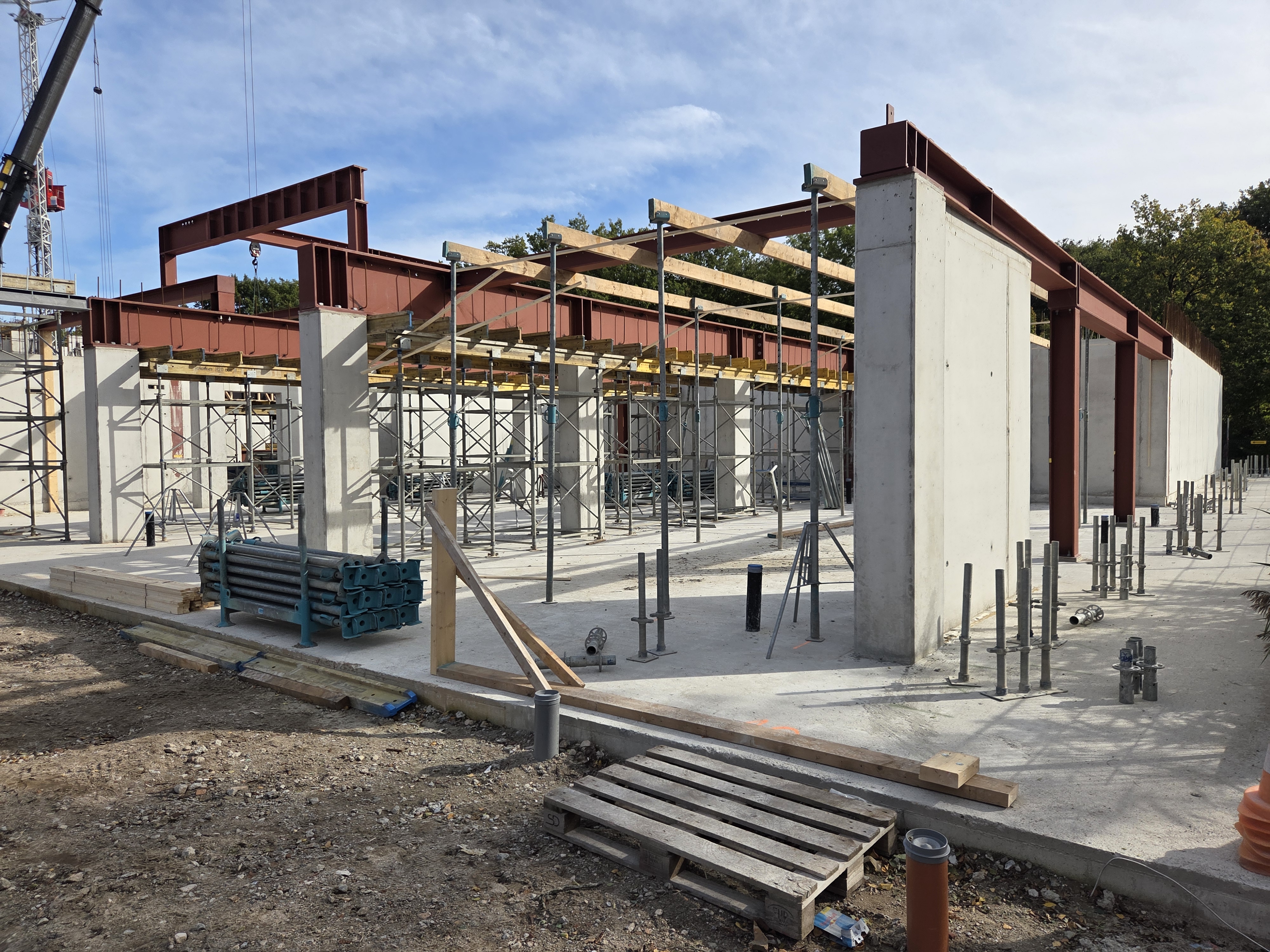 De begane grond, waar onder andere de Lounge & Living komt, is al heel erg ver. Op dit moment is de aannemer de laatste handen aan het leggen aan de eerste verdiepingsvloer en worden er stappen gezet om verder de hoogte in te gaan. In de komende maanden zal de voortgang daardoor steeds beter zichtbaar worden.