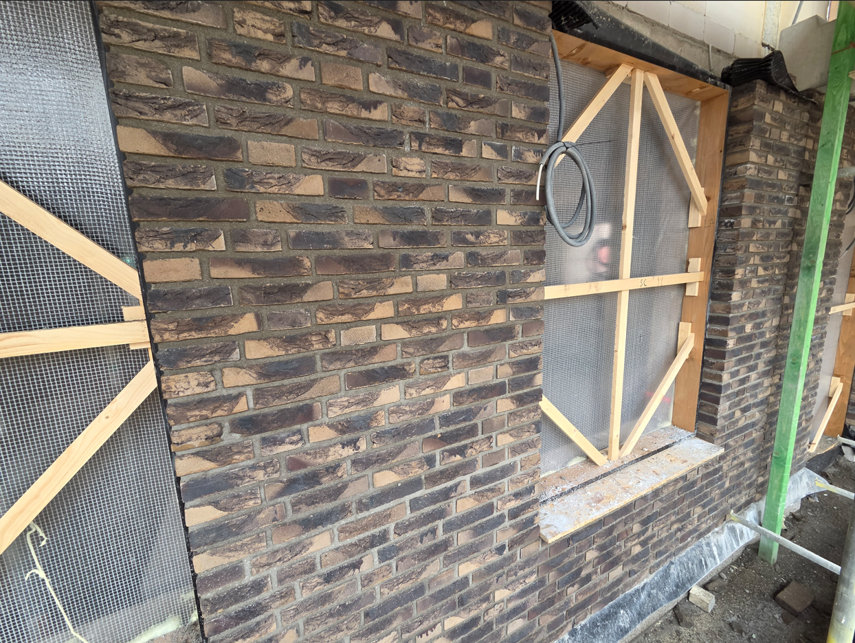 De eerste grote delen van het metselwerk zijn aangebracht. Een rustige steen die goed samengaat met de kleurstelling van de kozijnen, balustrades en de algehele uitstraling van Blooming.